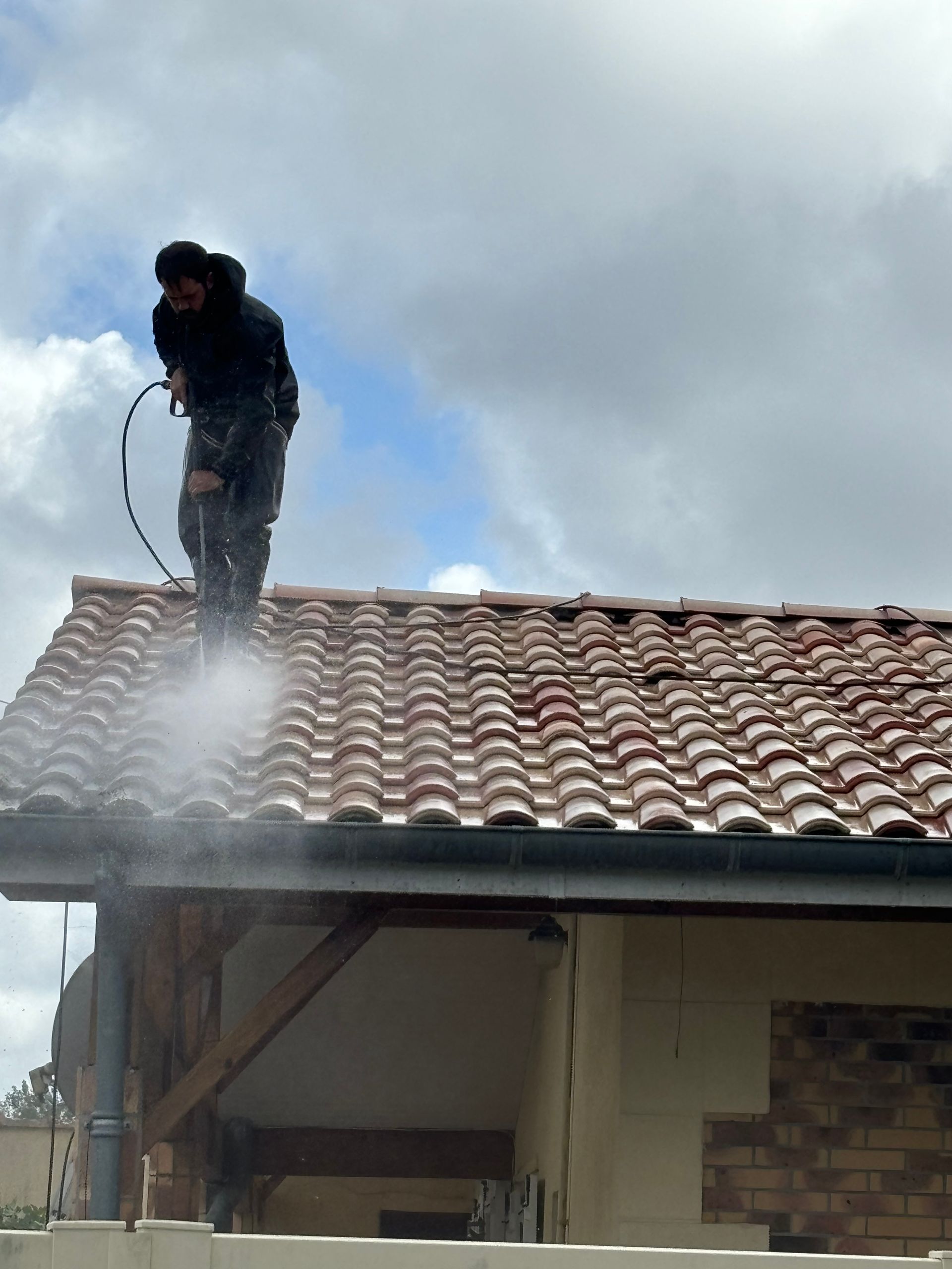 - Nettoyage à Haute Pression : Utilisation de nettoyeurs à haute pression adaptés pour éliminer les mousses, lichens, algues et autres débris sans endommager les matériaux de la toiture.